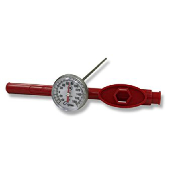 The 1246-03C Bi-Metal Pocket Test features a red protective sheath with anti-microbial additive, adjustment tool and pocket clip. NSF certified and it is field adjustable.