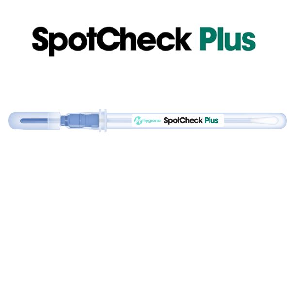 Hygiena™ SpotCheck Plus detects the presence of glucose and lactose on a surface.