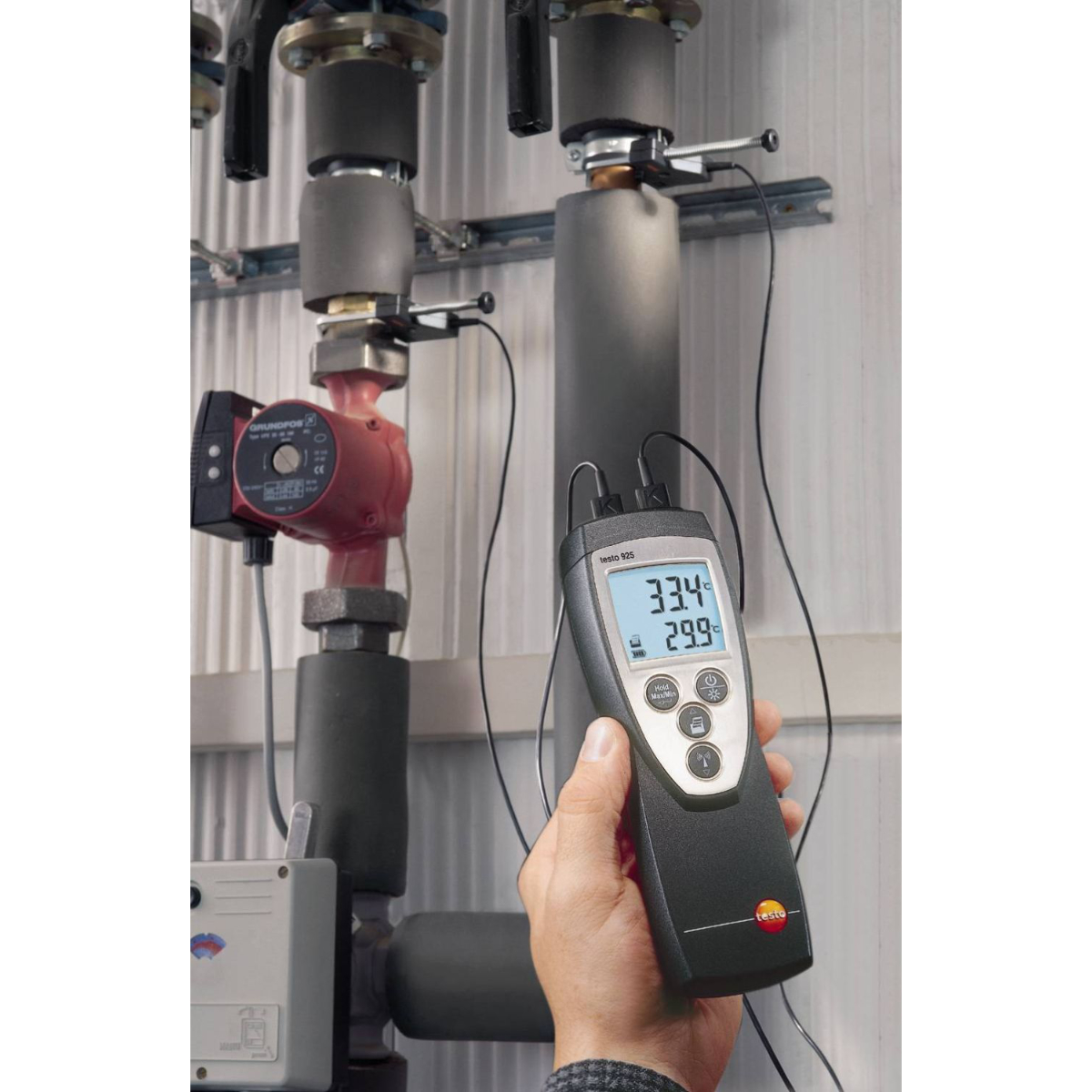 Temperature measurements; measurements with up to three temperature sensors; direct display of temperature differences: the testo 922 digital temperature meter is ideal for professional use in the fields of heating, plumbing and air conditioning.